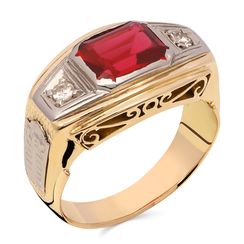 Anel de Formatura com Pedra Verde Sintética - Ouro Amarelo 18k