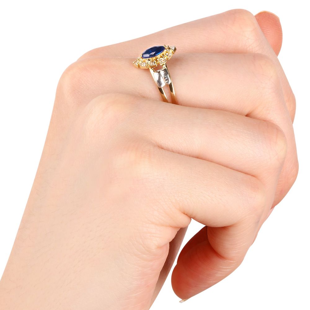 Anel Formatura Pedra Sintética Navete Azul Ouro