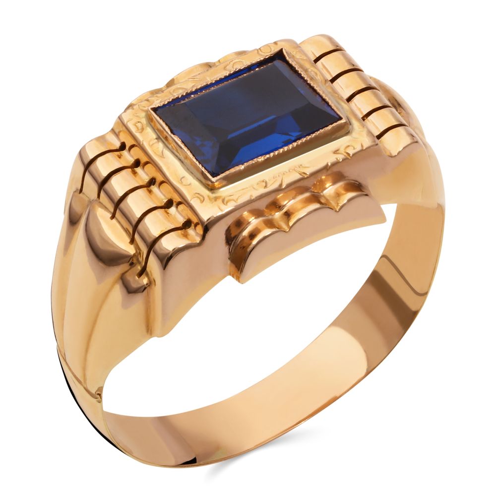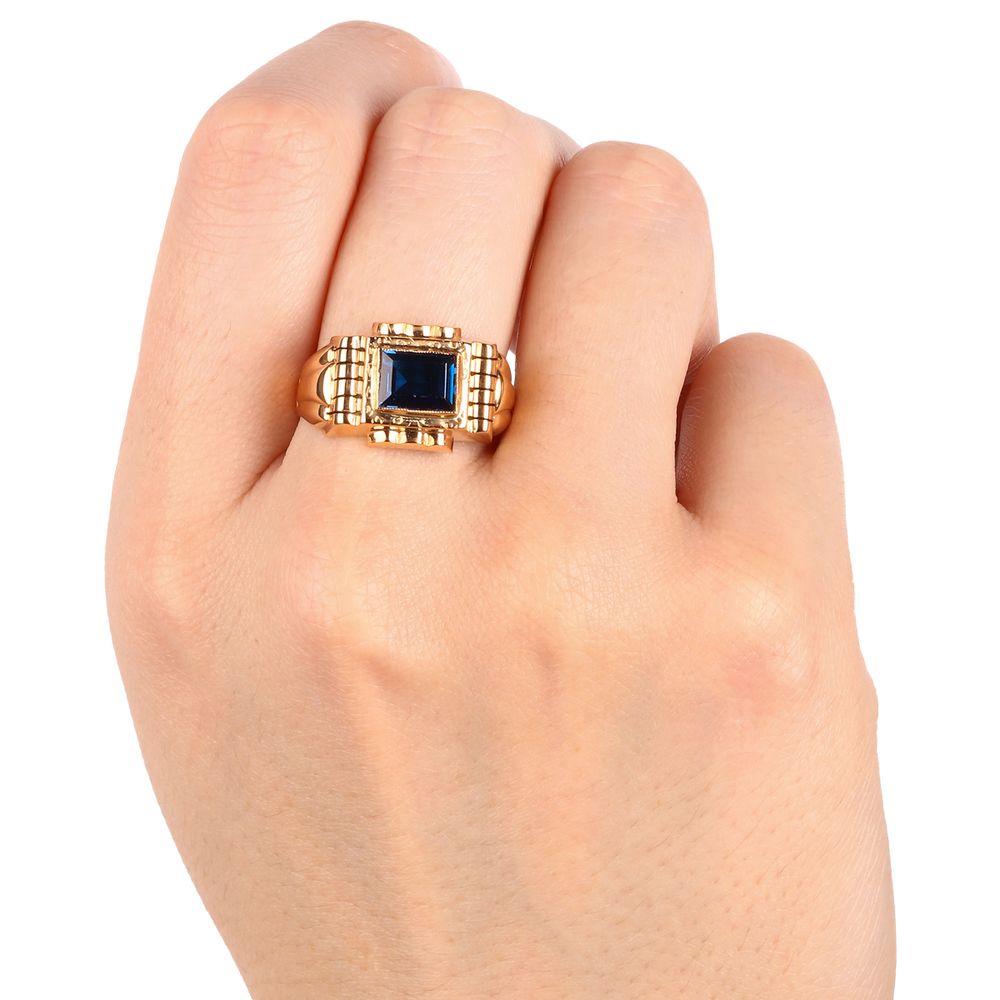 Anel Formatura Pedra Sintética Azul Ouro Rosé