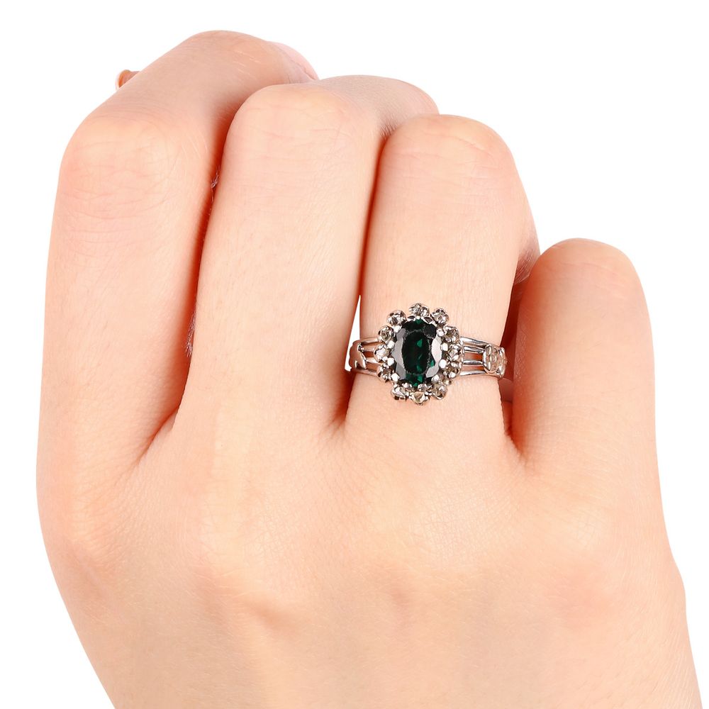 Anel de Turmalina Verde e Diamantes
