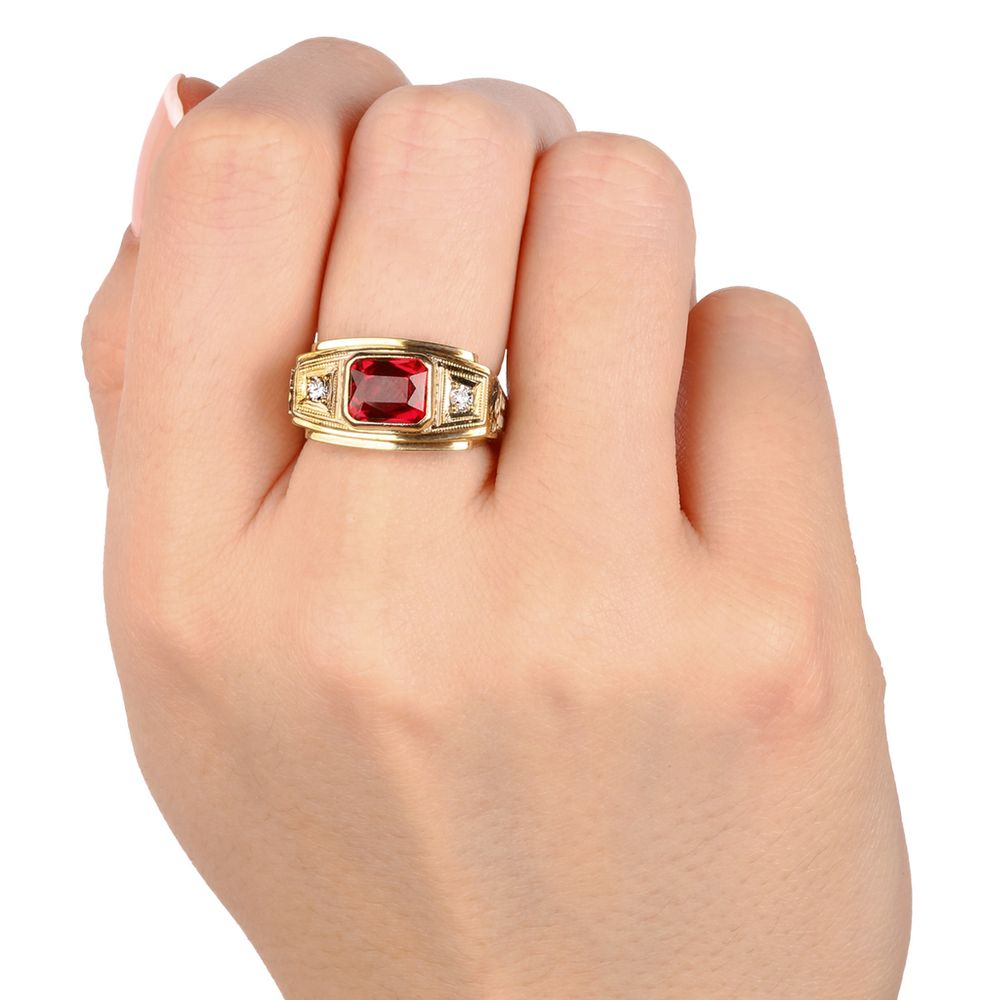 Anel de Formatura De Direito Pedra Sintética Vermelha e Diamanates Ouro Amarelo