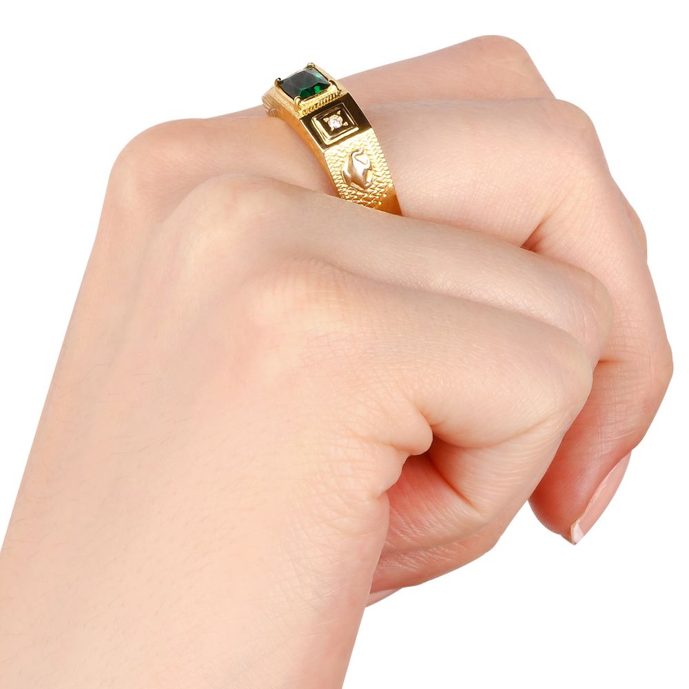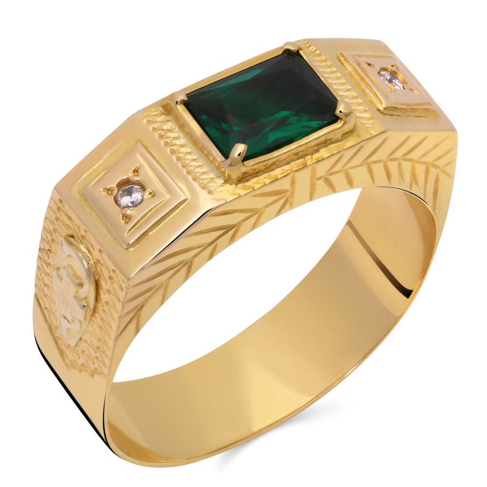 Anel Formatura Obsidiana Esmeralda e Zircônias