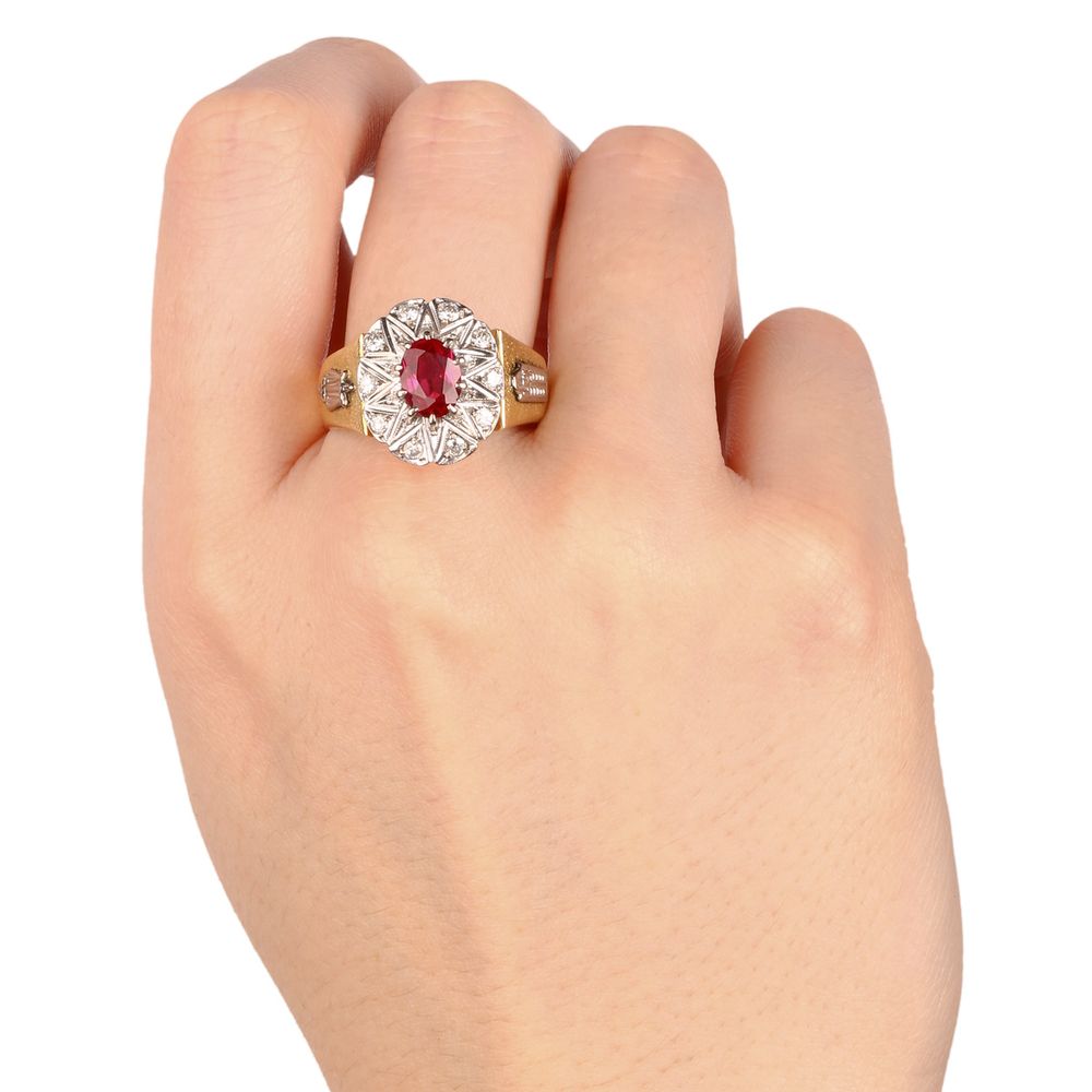 Anel Formatura de Rubi e Diamantes Ouro Amarelo