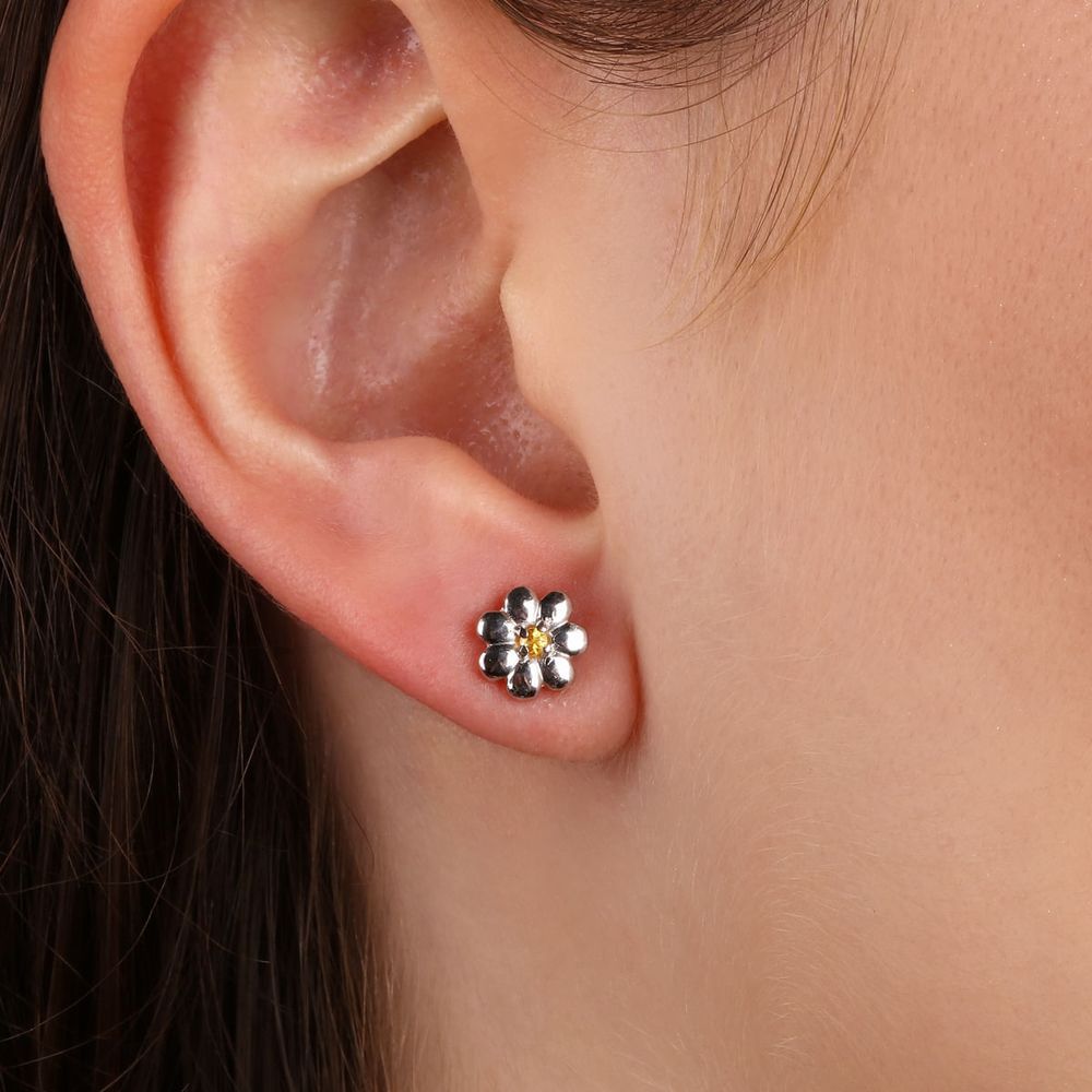 Par de Brinco em Prata 925 com Quartzo Champagne e Topázios Brancos