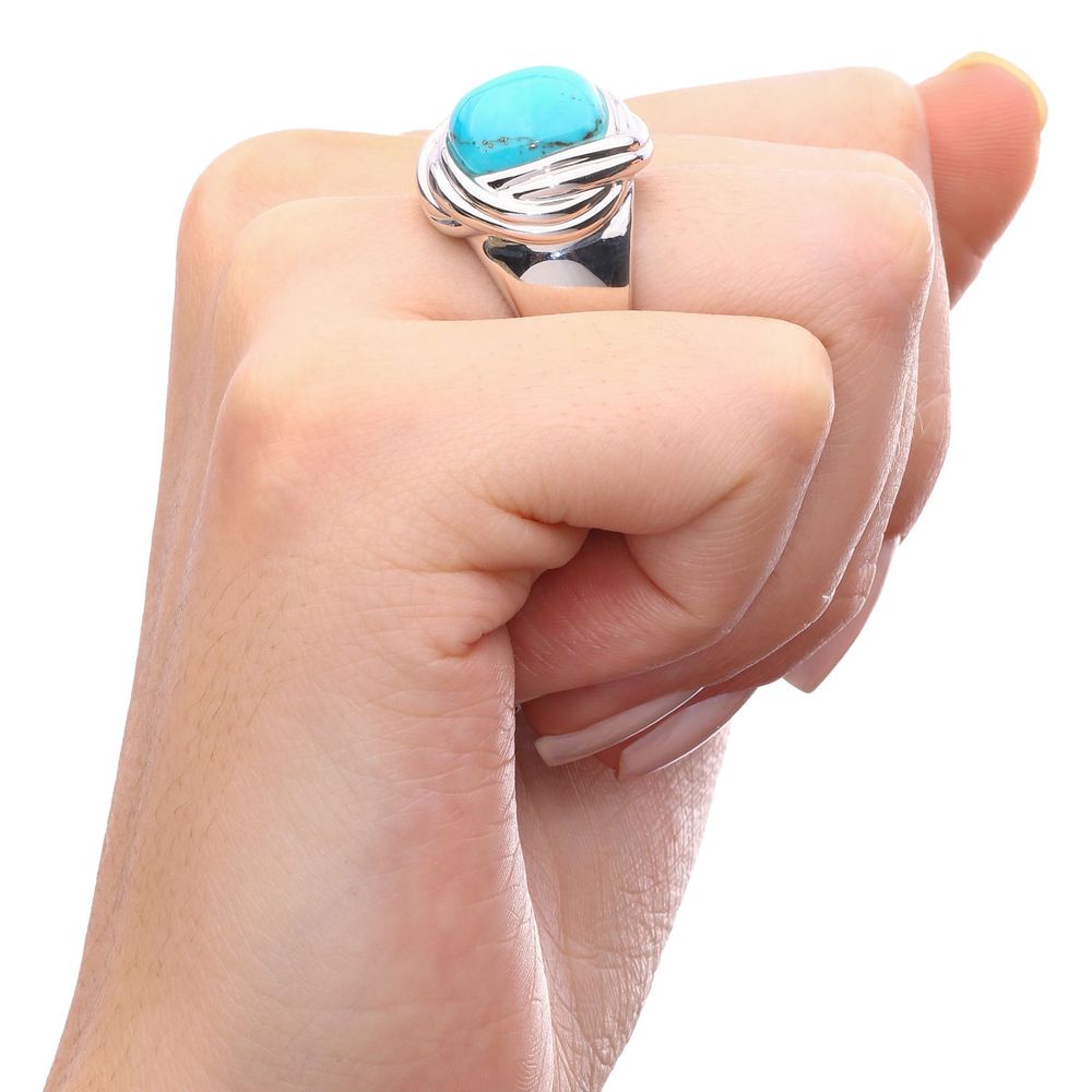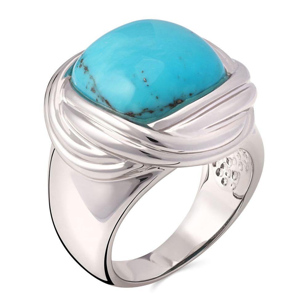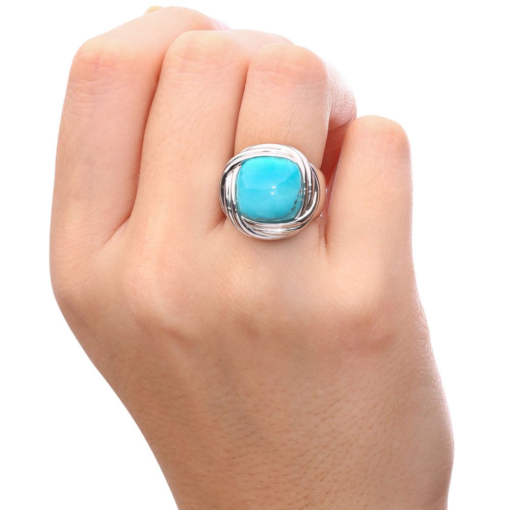 Anel Turquesa Quadrada Com Moldura Prata