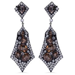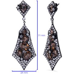 Par de Brinco em Prata Luxo Setara com Topázios Fumê e Topázios Brancos