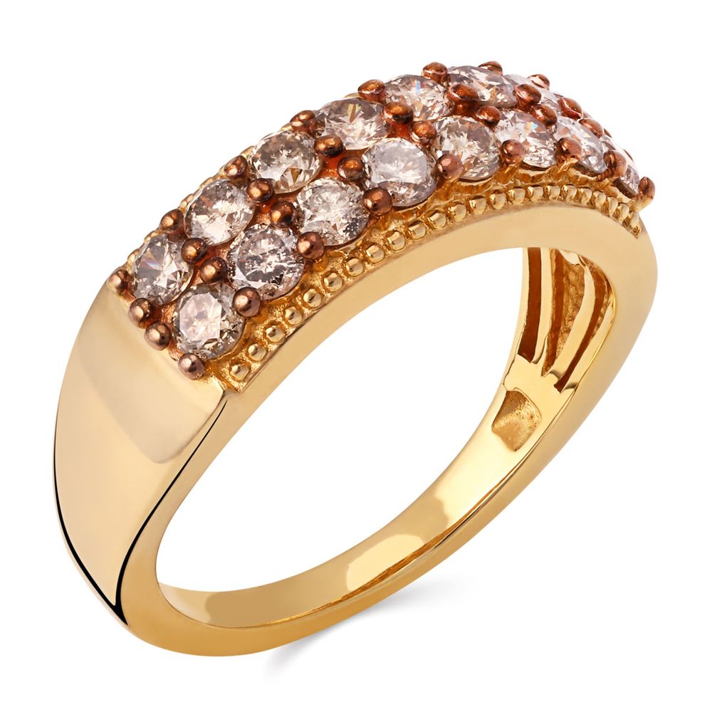 Anel romântico e clássico, decorado com diamantes chocolates, a peça é feita para você brilhar.