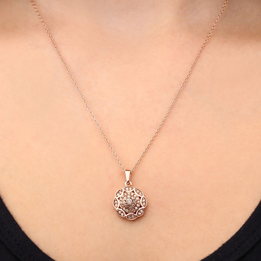 Pingente Flor de Diamantes Chocolate (aprox. 50pts) Linha Prata