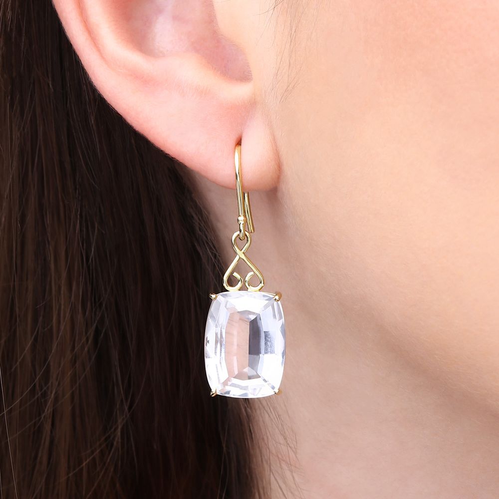 Conjunto com Par de Brincos e Anel com Cristais Retangulares aprox. 28,50 cts - Ouro Amarelo 18k