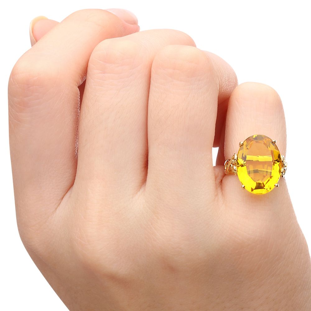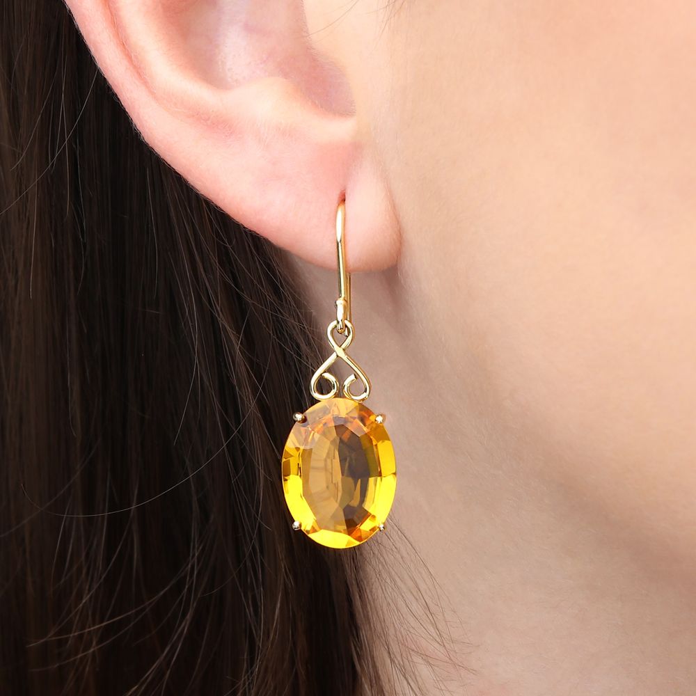 Conjunto - Par de Brincos e Anel com Citrinos Ovais Aprox. 21,50 cts - Ouro Amarelo 18k
