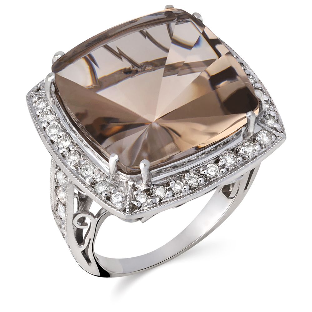 O tom acastanhado ocorre a partir de radiações naturais sobre a gema de quartzo.