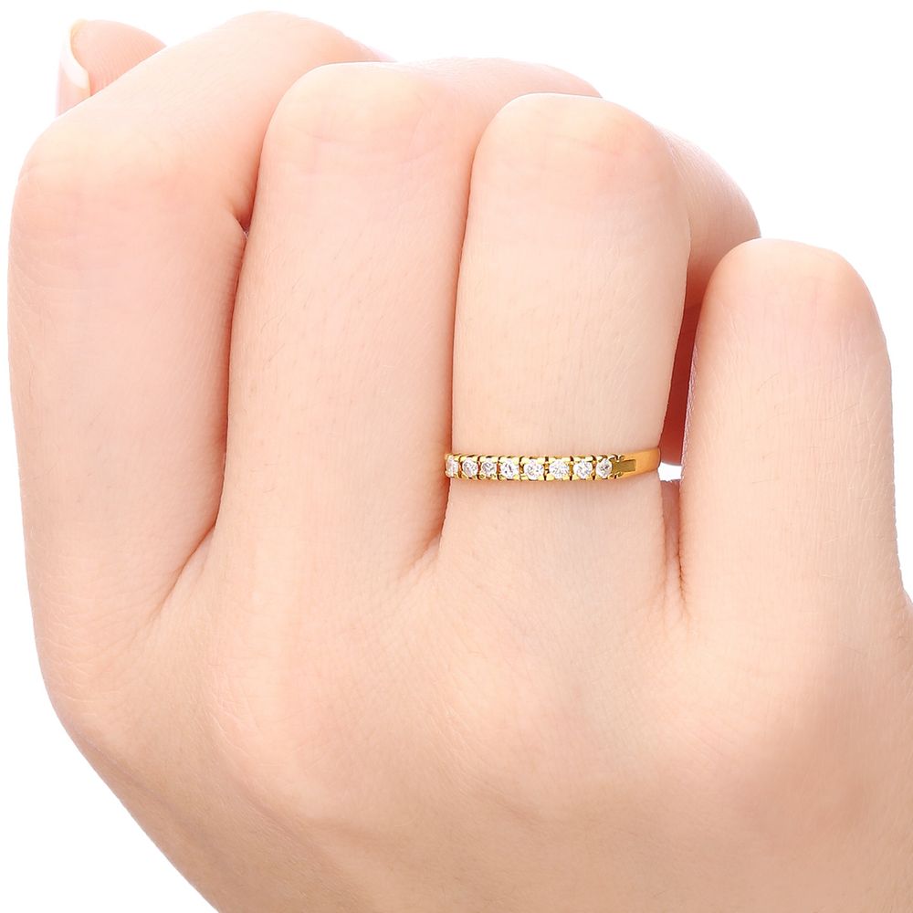 Meia Aliança com 8 Diamantes Aprox. 15 pts - Ouro Amarelo 18k