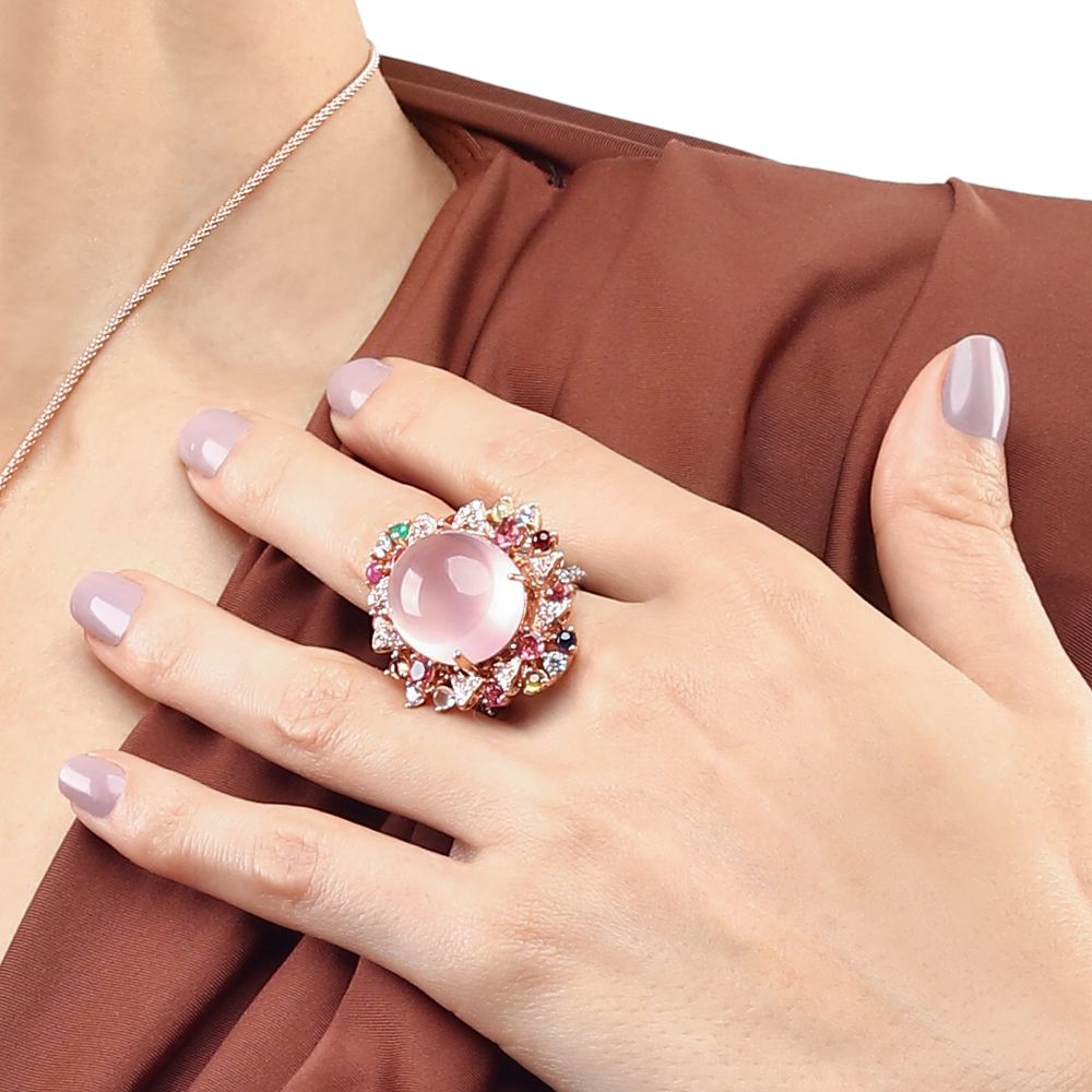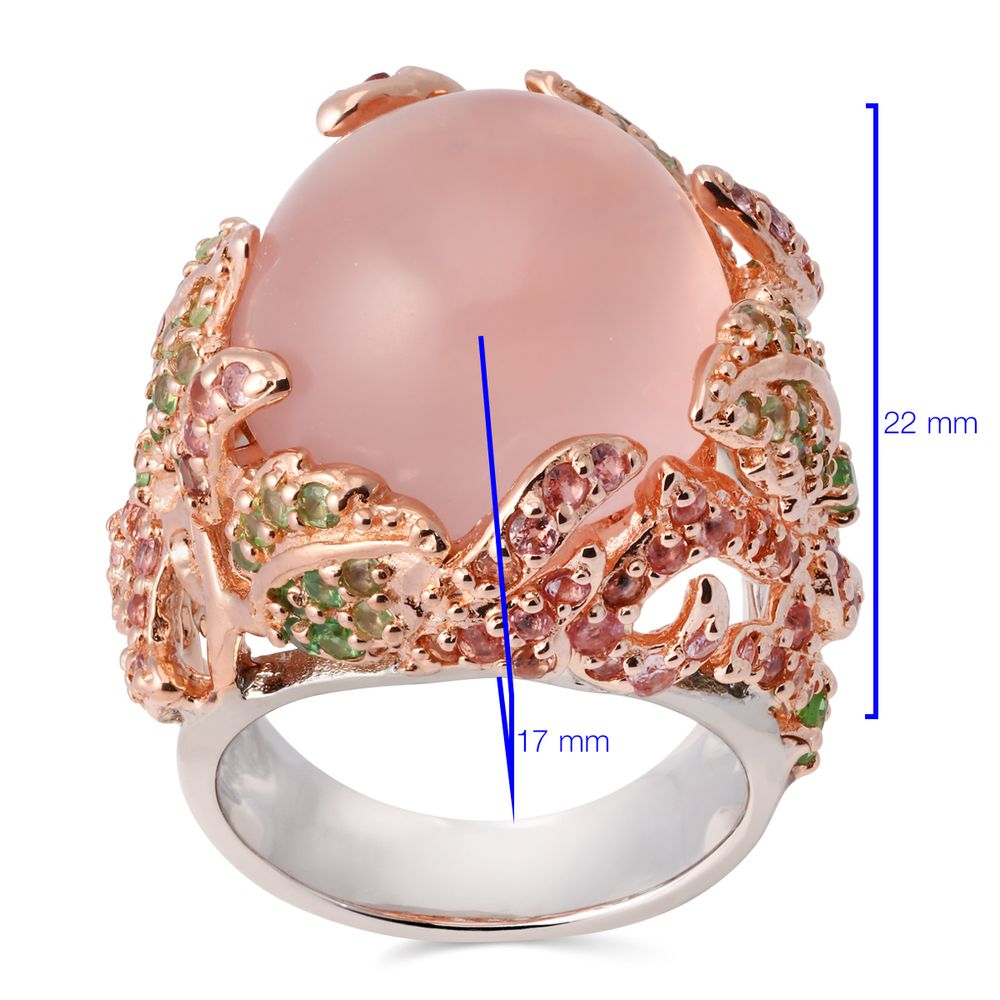 Em pedras: Quartzo Rosa, Safiras Rosas e Granadas Verdes