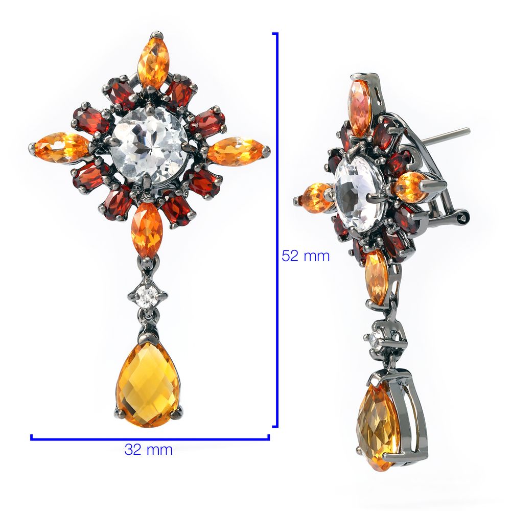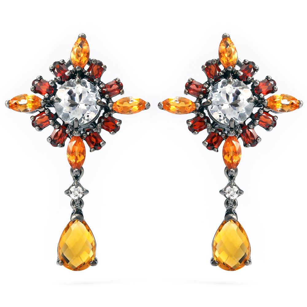 Em pedras: Quartzos Brancos, Citrinos, Granadas, Quartzo Sunset e Zirconias