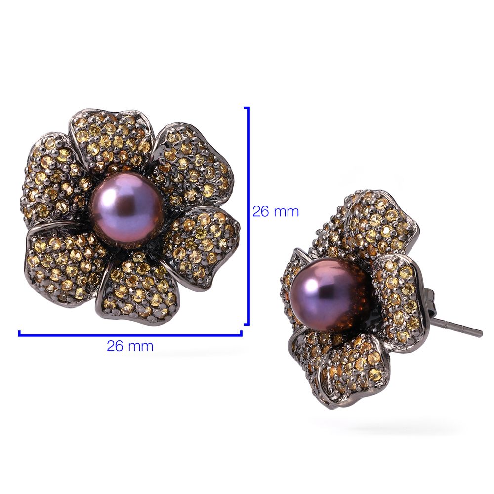 Em pedras: Perolas e Safiras Amarelas (Aprox,16,20cts ) Dimensões: 26mm por 26mm