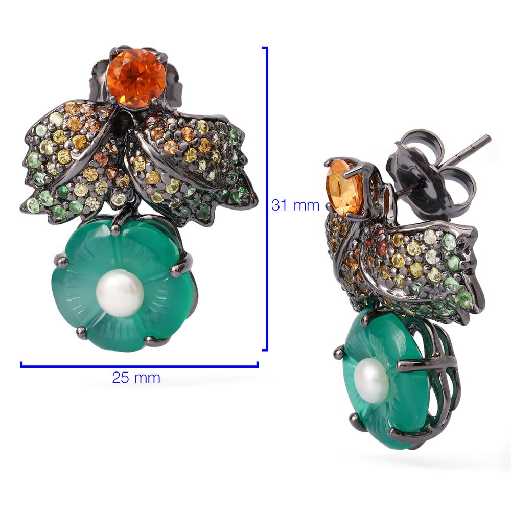 Em pedras: Calcedonia, Quartzo Sunset, Perolas, Safiras Laranjas e Granadas Verdes