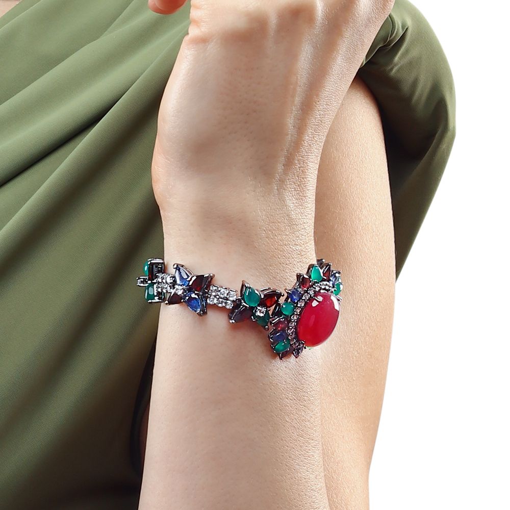 Em pedras: Rubi Cabuchon,Kianites,Rodolitas,Topázios Brancos,Calcedônias,Zircônias (Tot.Aprox. 86 Cts) Prata