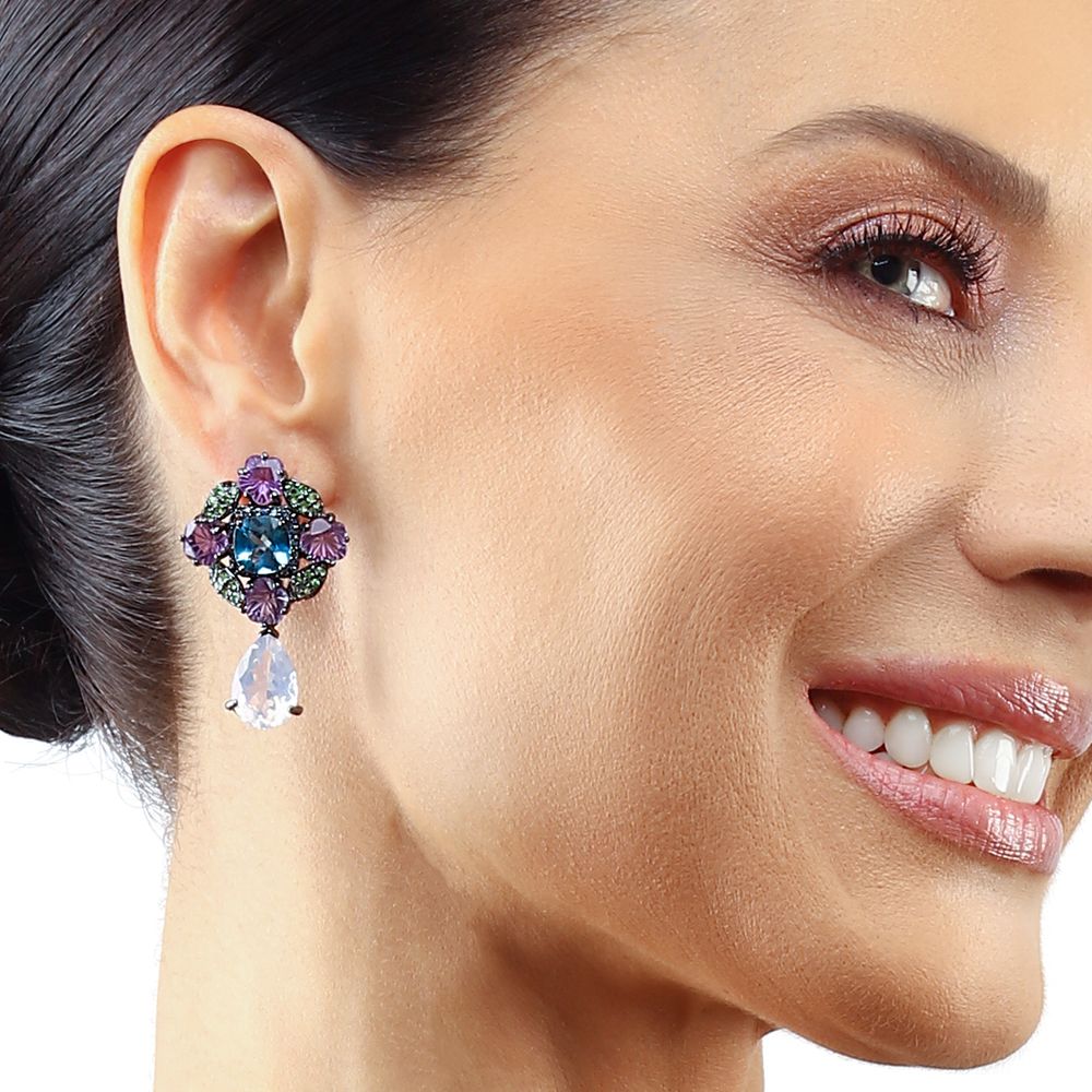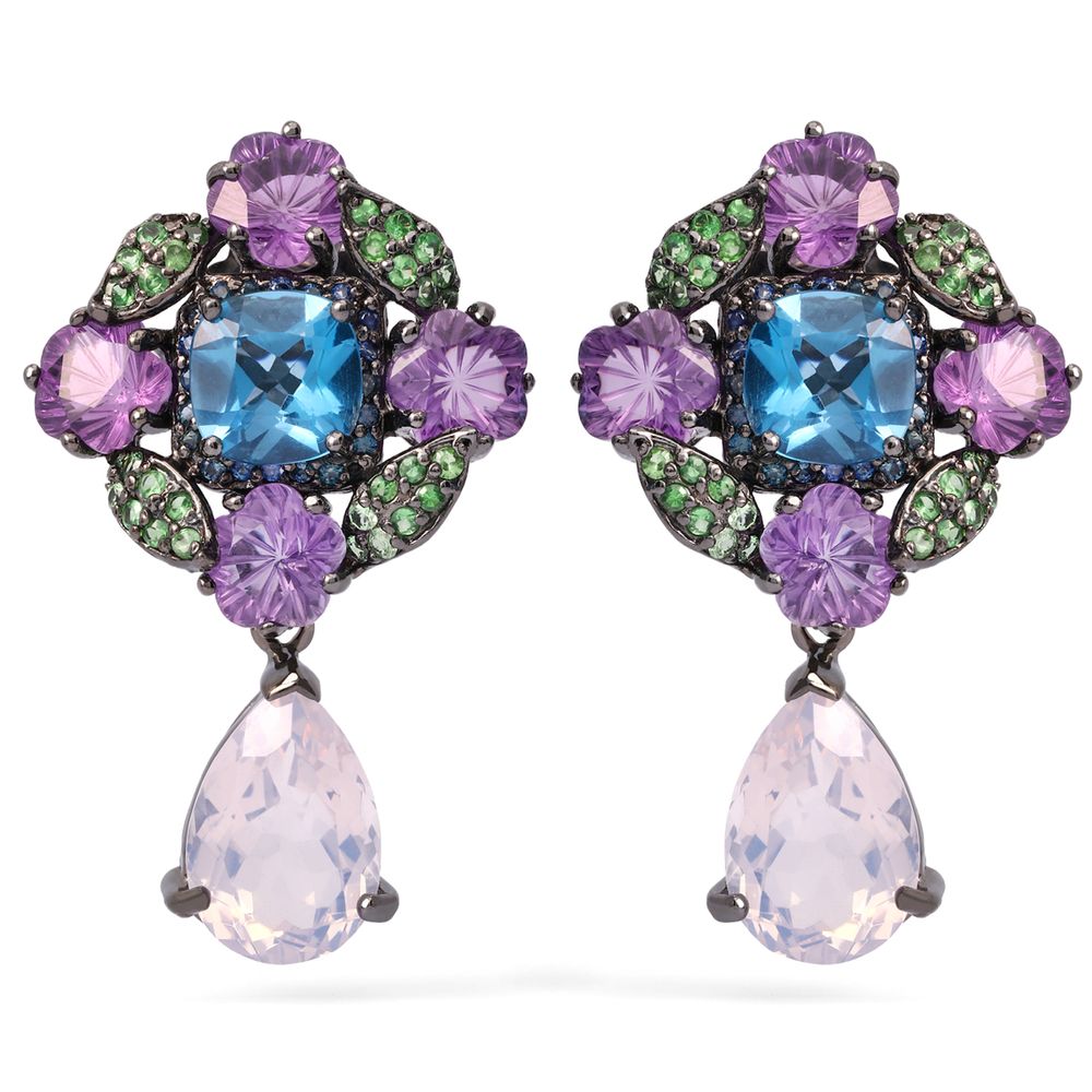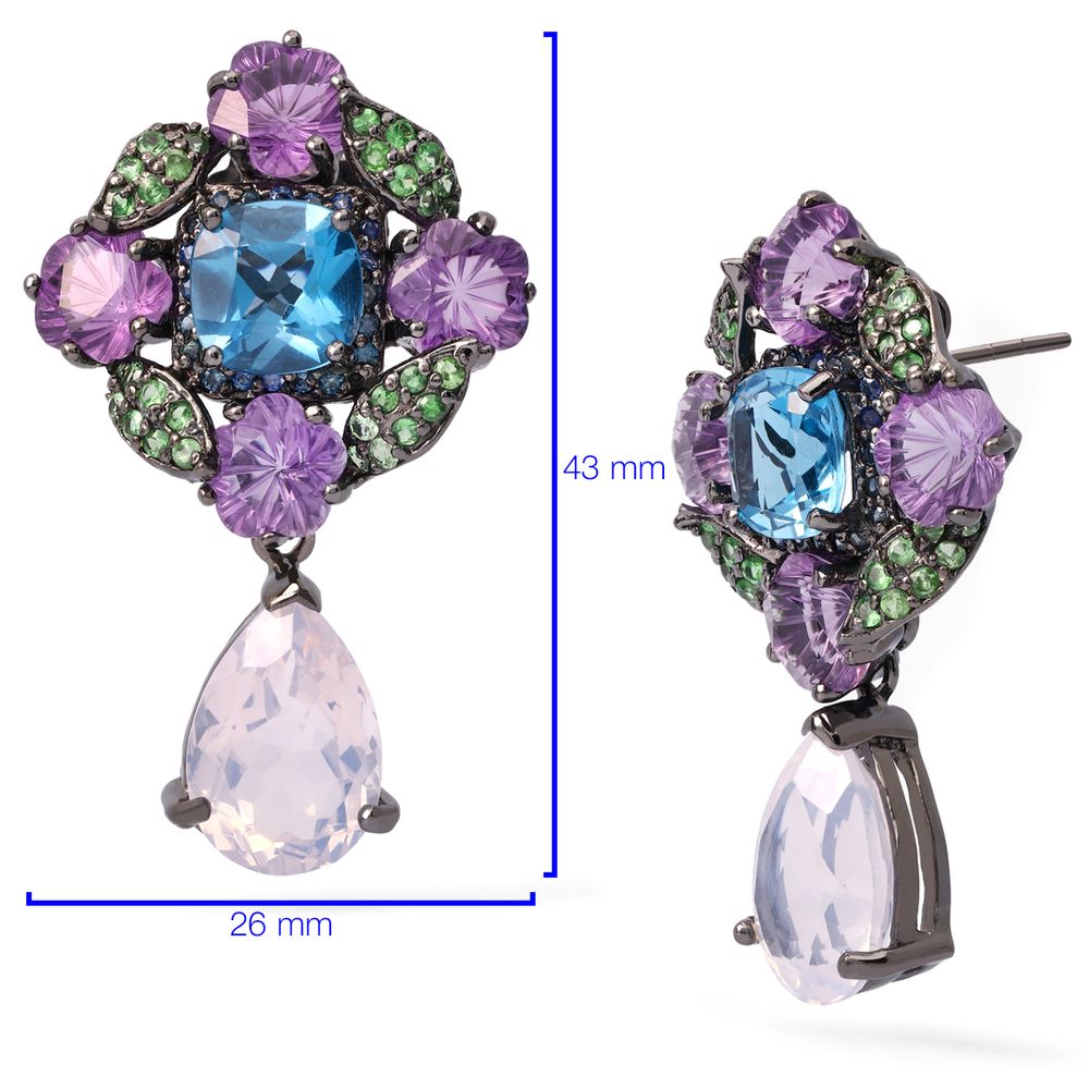 Em pedras: Quartzos Rosas, Topazios London Blue, Ametistas, Safiras Azuis e Granadas Verdes Dimensões: 43mm por 26mm