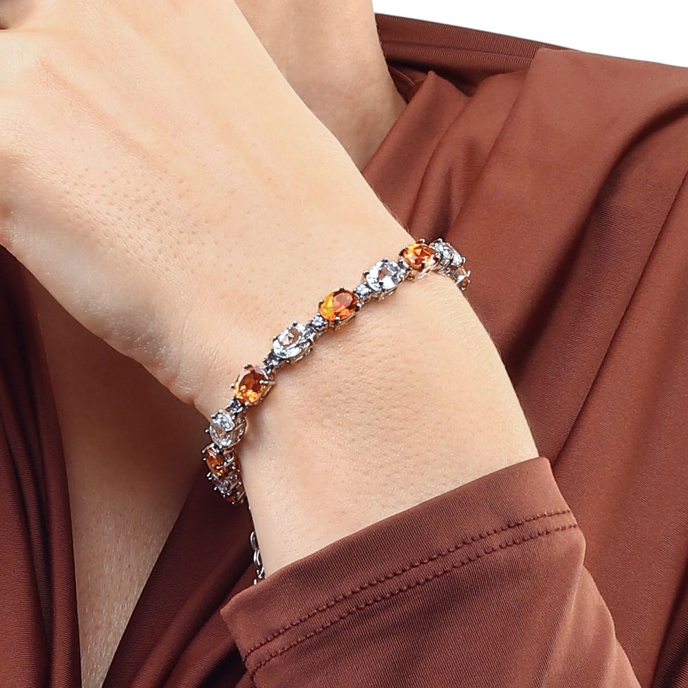 Em pedras: Quartzos Sunset, Topazios Brancos, Tanzanitas e Zirconias Aprox. 20 cts