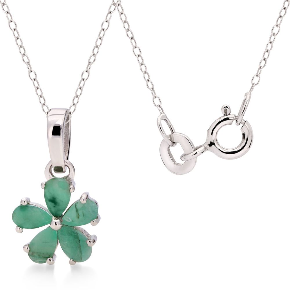 Pingente Flor com Esmeraldas - Aprox. 90 cts - Prata - Corrente 45 cm