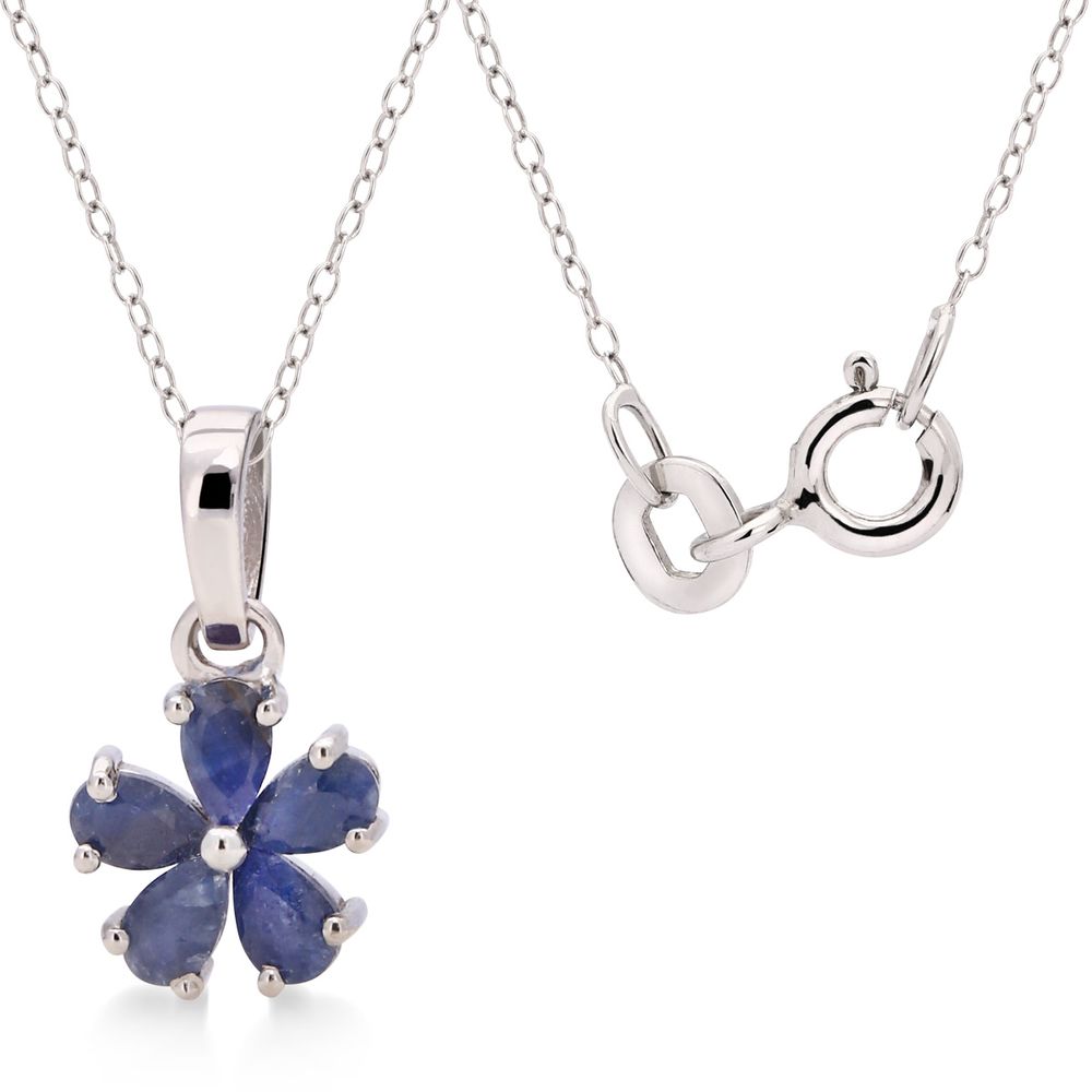 Pingente Flor com Safiras Azuis - Aprox. 1,5 cts - Prata