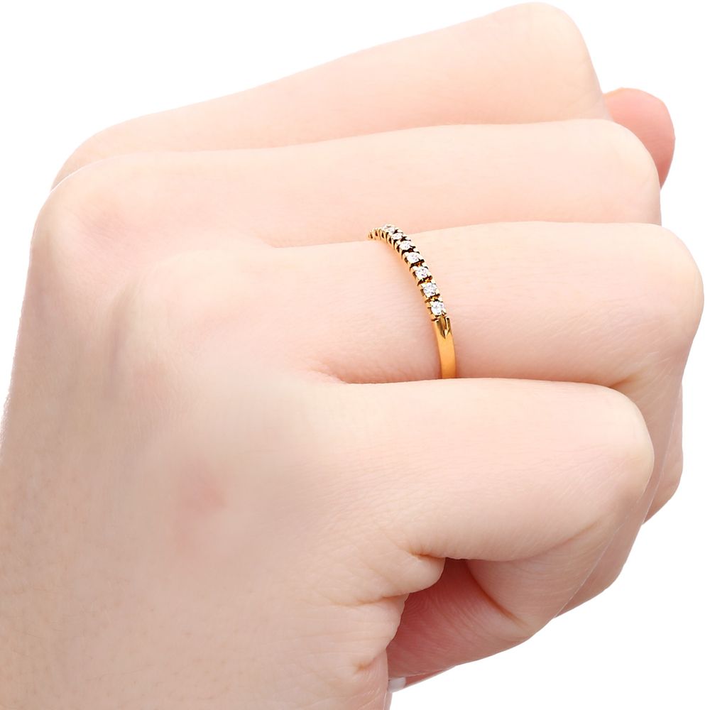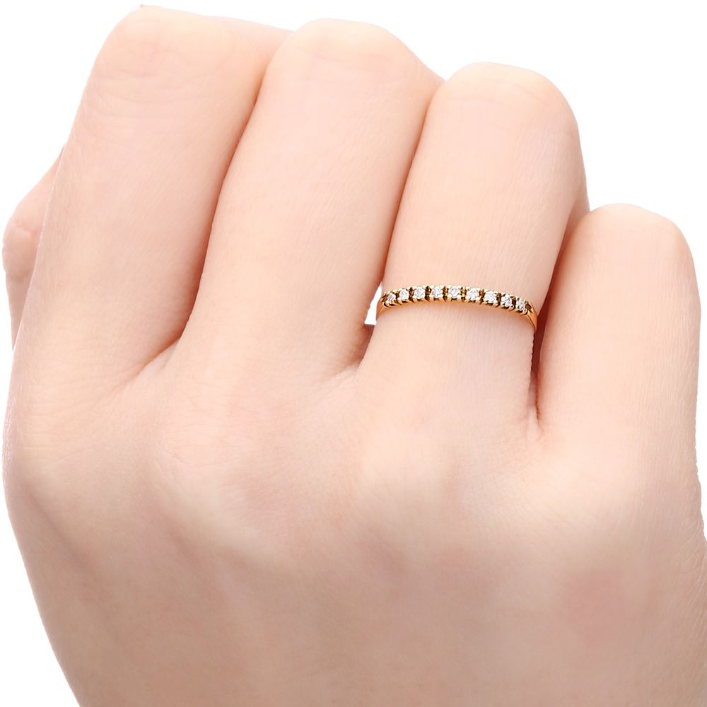Com design atemporal e brilho incomparável, esta meia aliança com 9 diamantes é a expressão perfeita da elegância refinada. Cada pedra cuidadosamente cravada reflete luz e sofisticação em todos os ângulos.