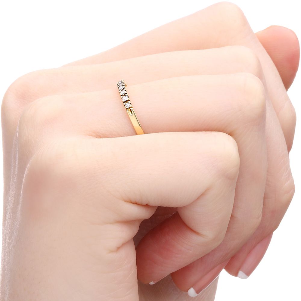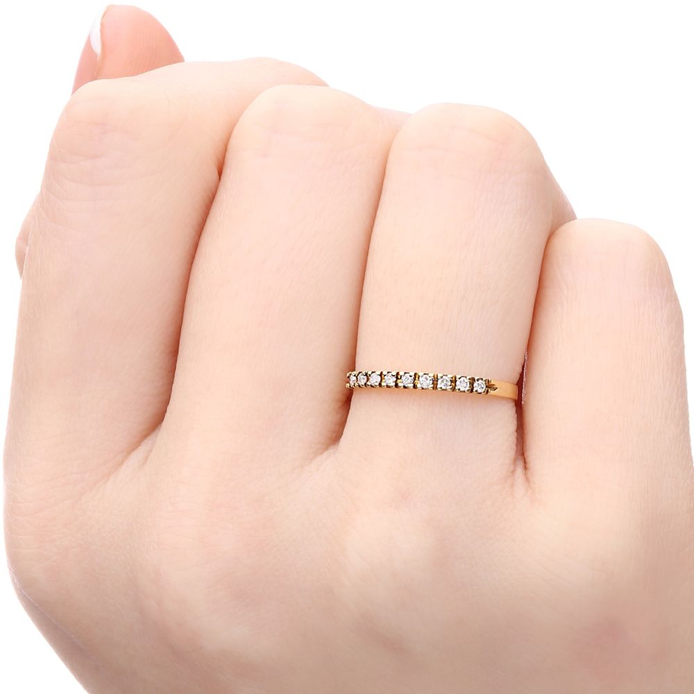 Esta elegante meia aliança é a expressão perfeita de delicadeza e requinte, ideal para quem valoriza joias versáteis e cheias de significado.