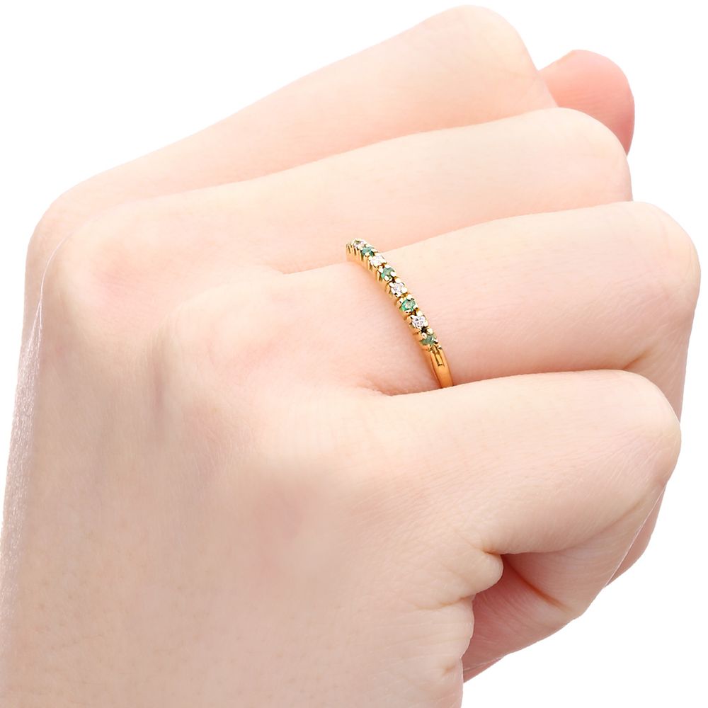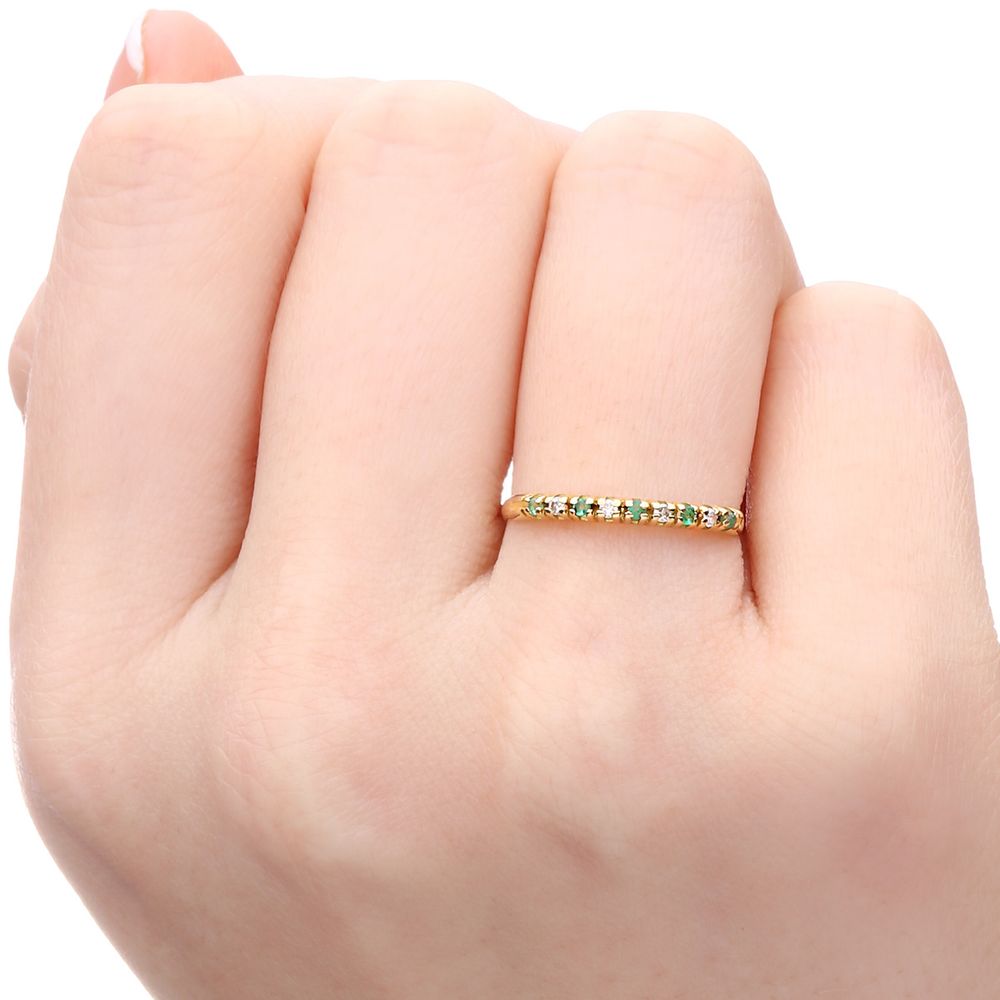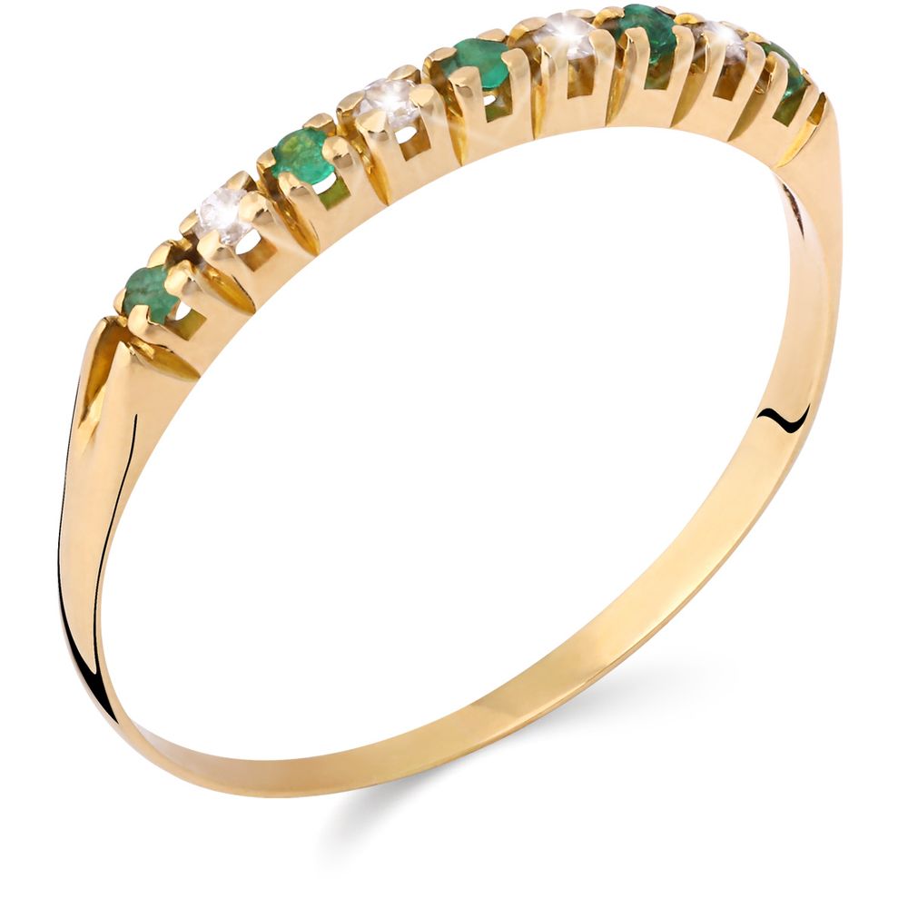 Meia Aliança de Ouro com Esmeraldas e Diamantes Brancos