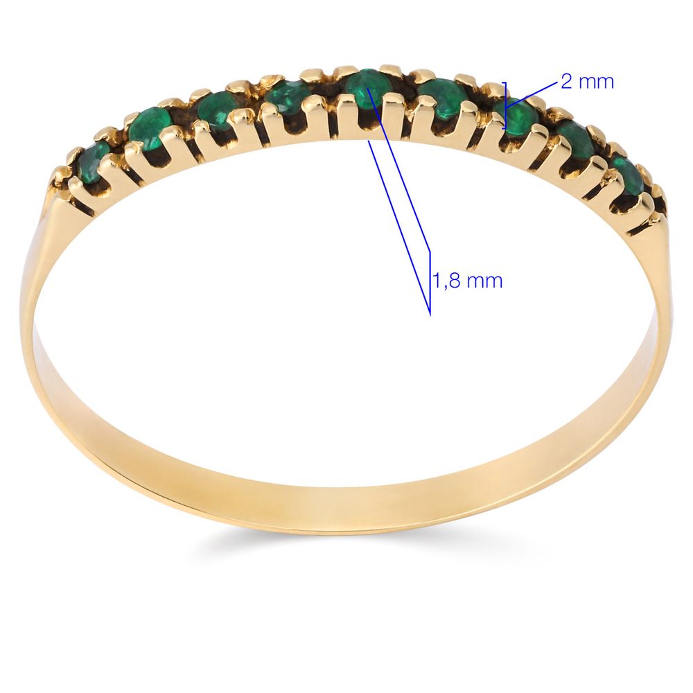 Esta deslumbrante meia aliança é uma verdadeira joia de sofisticação, composta por 9 esmeraldas de brilho vibrante, dispostas de forma harmoniosa ao longo do aro. A peça oferece um design elegante e moderno, ideal para marcar momentos especiais, como um noivado ou para adicionar um toque de cor e luxo ao seu estilo diário.