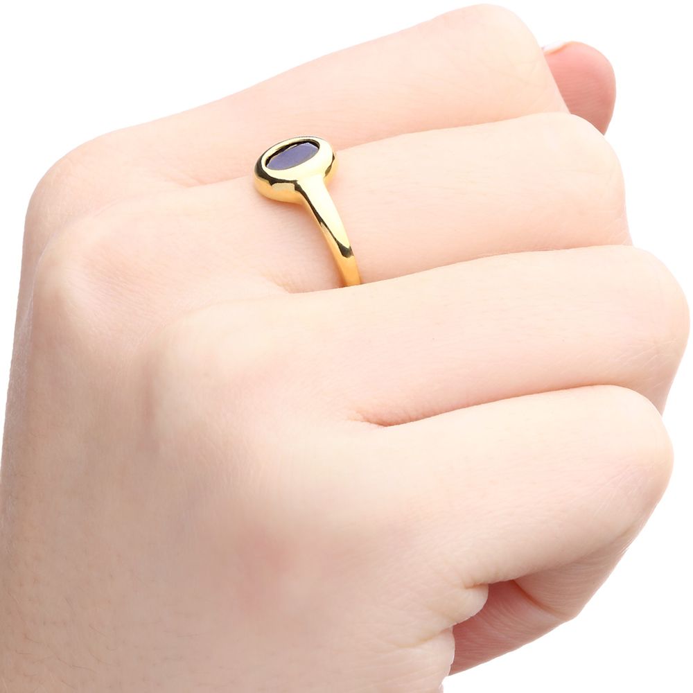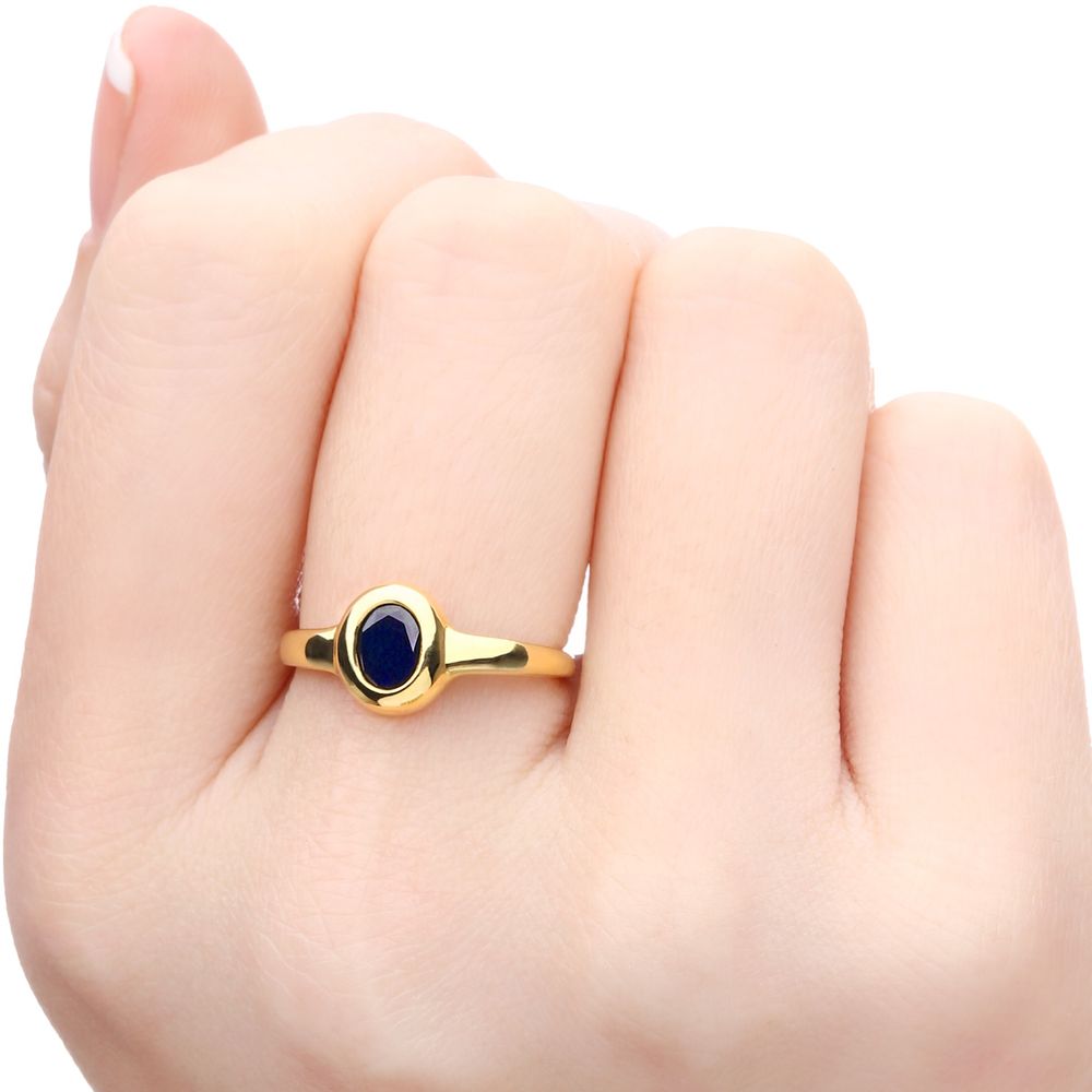 Com design moderno este anel apresenta uma safira natural em lapidação oval, realçada por uma elegante cravação inglesa.