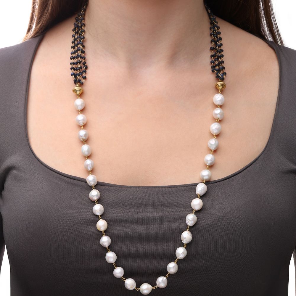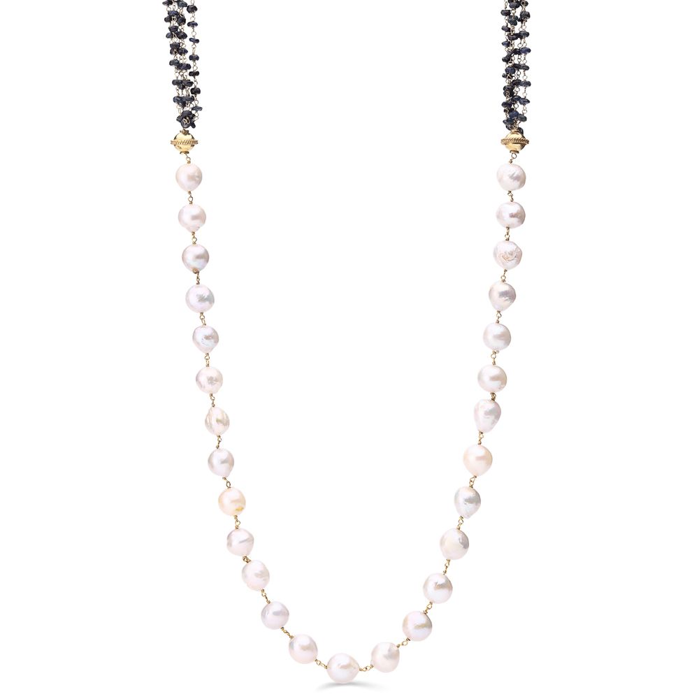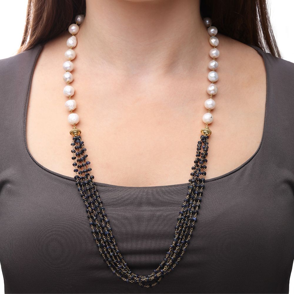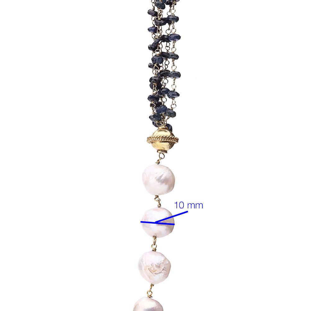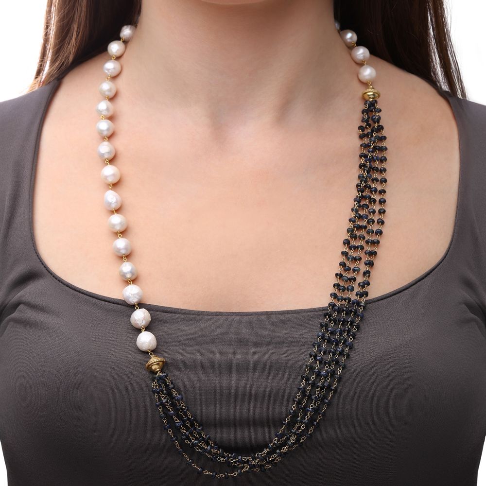 O Colar com Pérolas e 5 Fileiras de Safiras é uma peça que une suavidade e exuberância em perfeita harmonia.