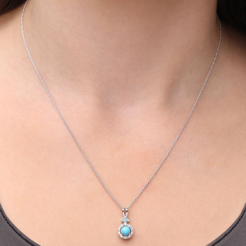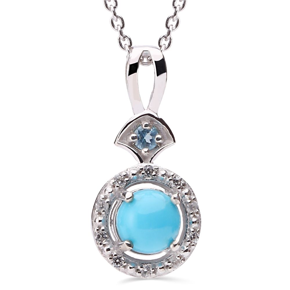 Pingente com Turquesa Cabochon, Topázio Azul e Zircônias Prata