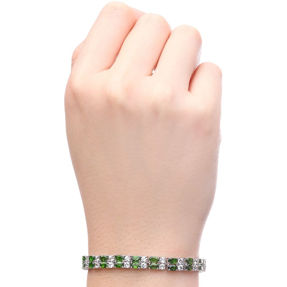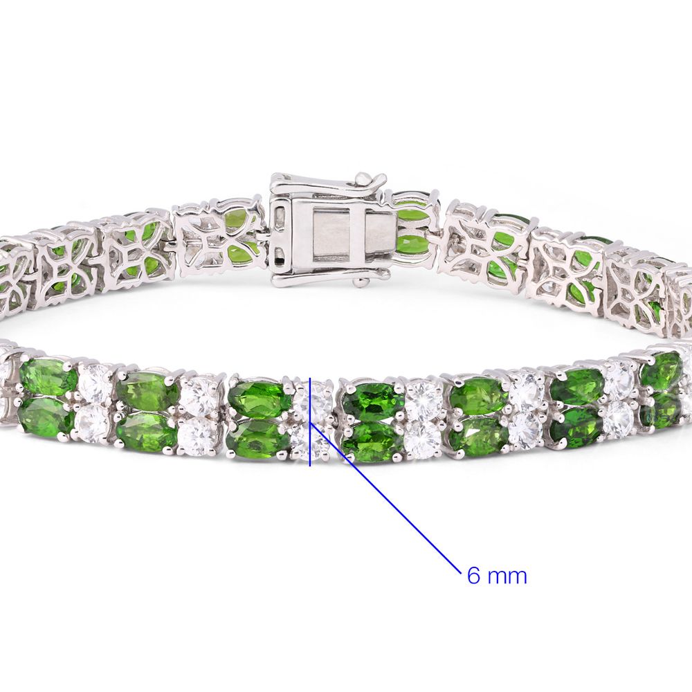 Pulseira com 2 Fileiras de Chromediopsides e Zircônias Prata