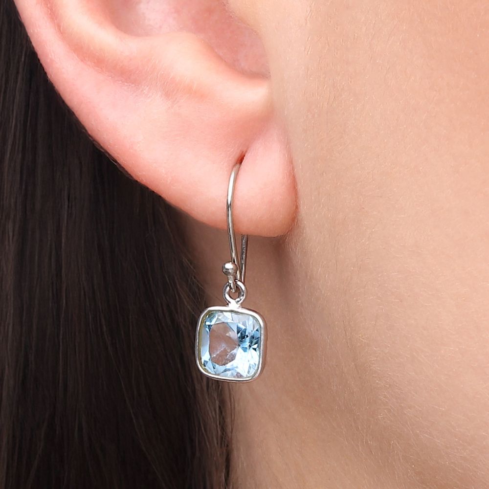 Par de Brincos Quadradinho com Topázios Azuis
