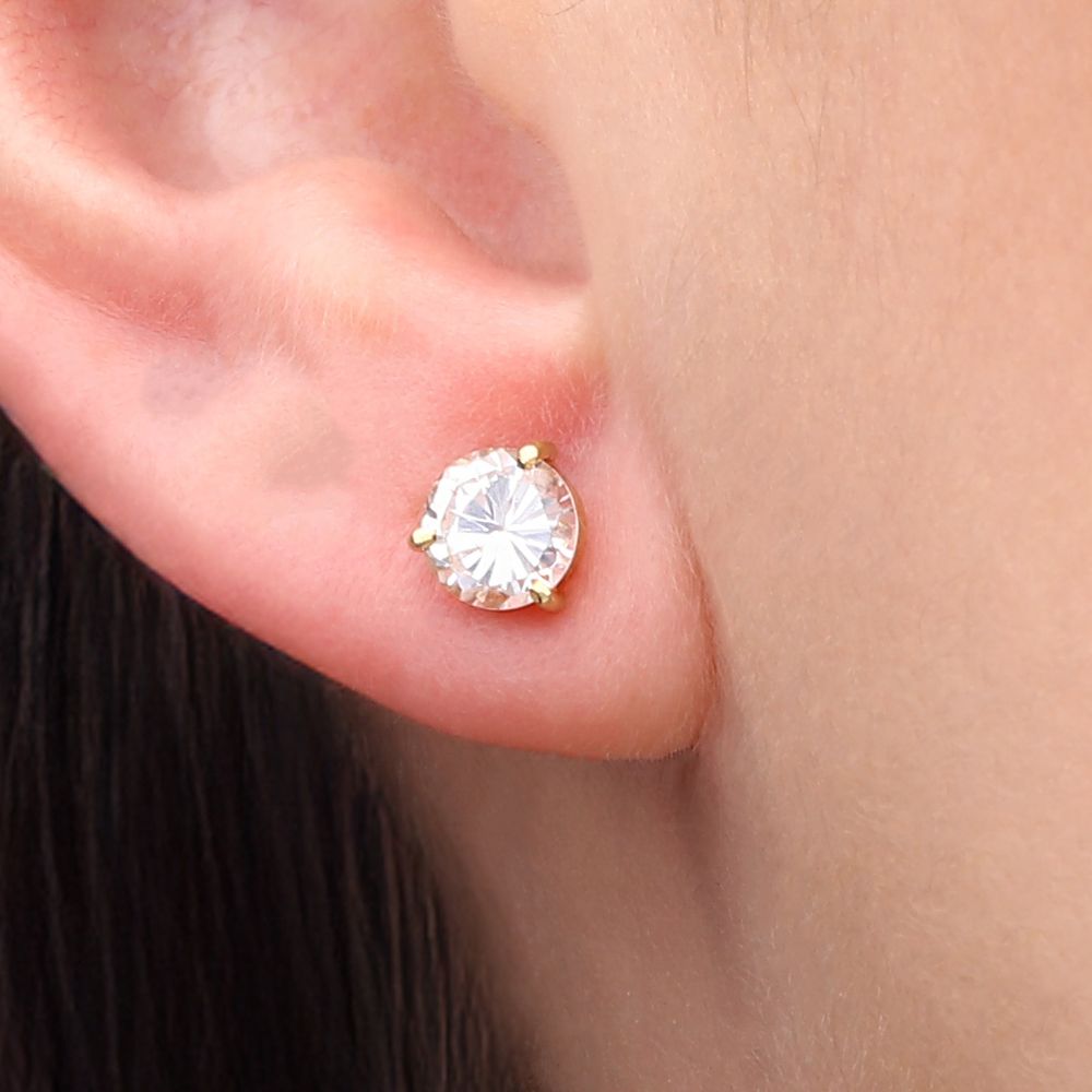 Par de Brinco em Ouro Amarelo Florzinha com Zircônia Azul Infantil