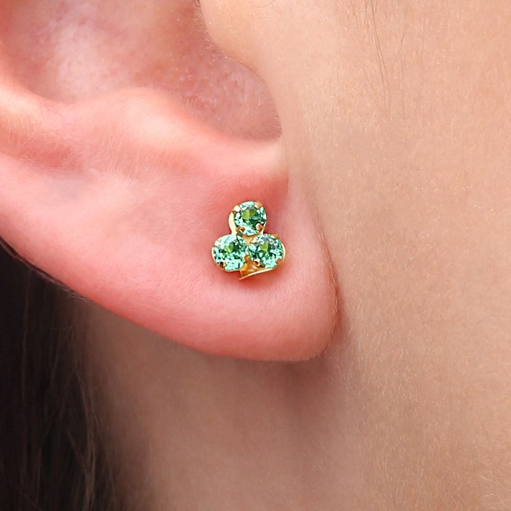 Par de Brinco Infantil Florzinha Com Pedra Sintética Verde