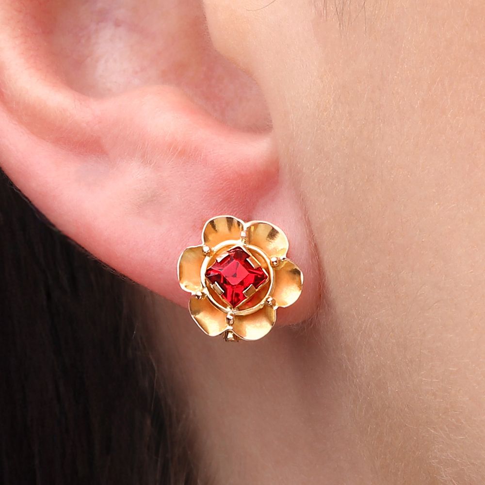 Par de Brincos Florzinha com Pedra Sintética Vermelha