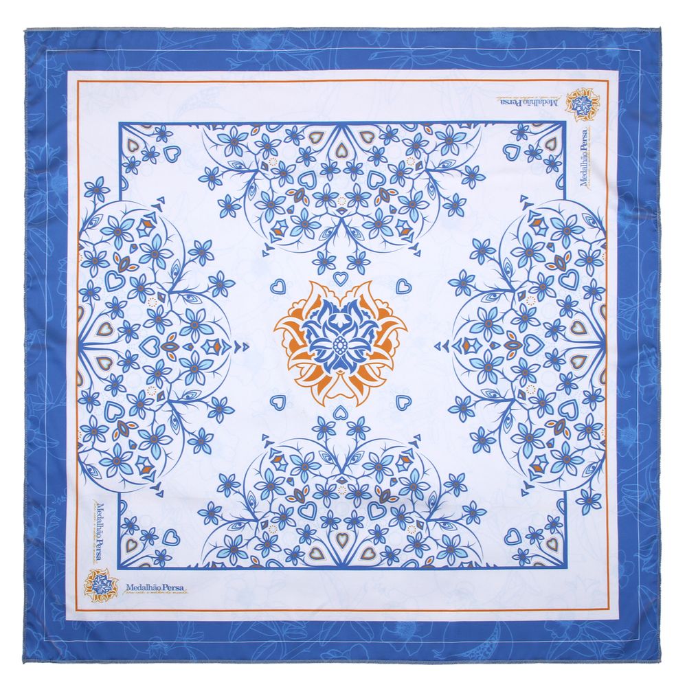 Lenço Azul Floral Medalhão Persa