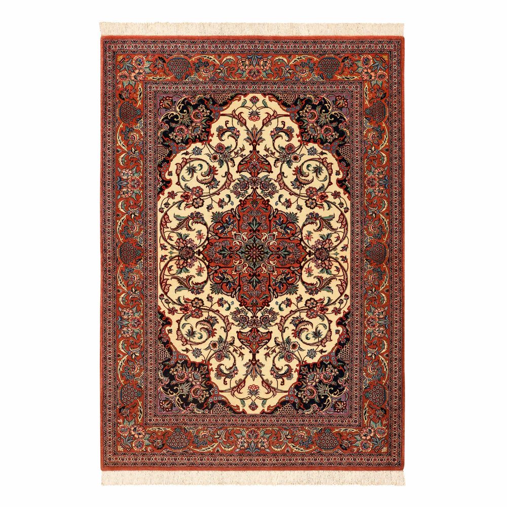 Tapete confeccionado na região de Ghom (também denominado: Qom ou Qum), cerca de 150 km a sudoeste da capital do Irã, Teerã.