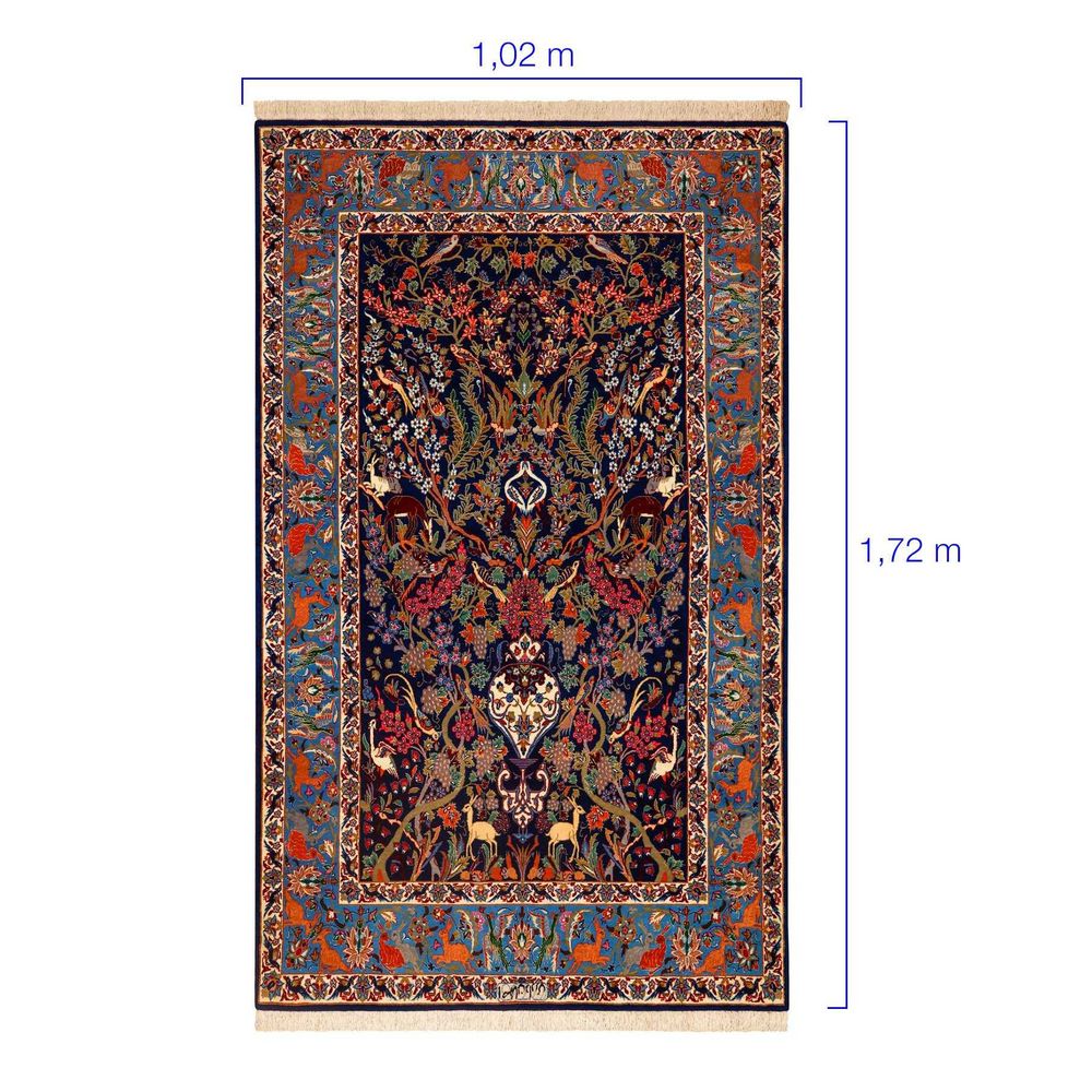 Tapete proveniente de Isfahan (também denominada Ispaã), cidade antiquíssima e uma das mais belas cidades do mundo e um importante centro turístico do Irã por sua beleza e história.