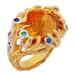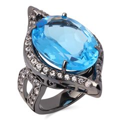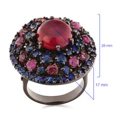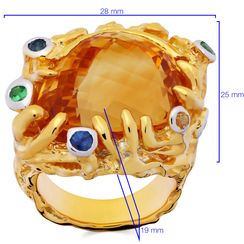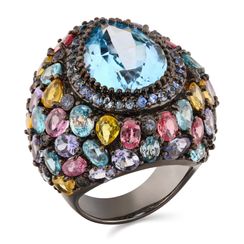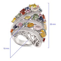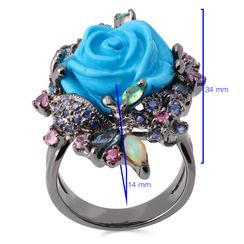 Anel Linha Premium em Prata 925 Floral com Calcedônia e Mix Pedras