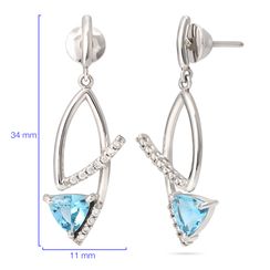 Par de Brinco com Topazios Azuis e Diamantes Aprox. 22 pts Au Bco 18k