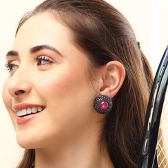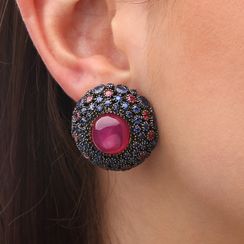 Par de Brinco Prata com 24 Rubis, 22 Kianites e 86 Safrias Azuis Aprox. 32,32 cts