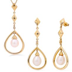 Par de Brinco e Pingente de Prata com Pérolas de Água Doce