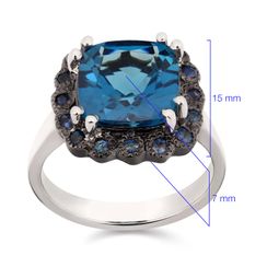 Anel e Par de Brinco de Prata Luxo com Topázios London Blue e Safiras Aprox. 17,5 cts