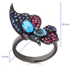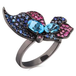 Anel em Ouro Branco 18 k com Safiras Azuis