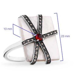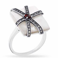 Anel em Prata 925 com Madre Pérola, Marcassitas e Granada