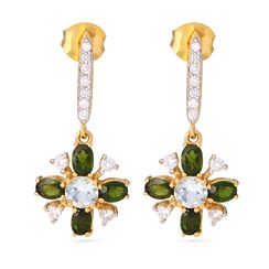Par de Brinco em Prata 925 com Quartzo Smoke e Topazios Brancos