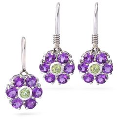 Par de Brinco e Pingente em Prata 925 Coração com Diamantes Ice