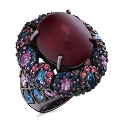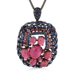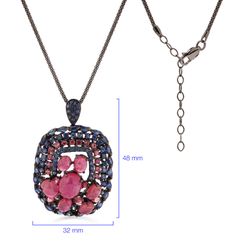 Colar Linha Premium em Prata 925 Floral Com Rubis e Mix de Pedras